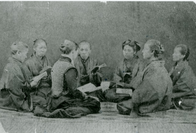 最後にダッドレーの写真、それも顔ではなく背中をご紹介します。1880年11月、神戸女子神学校はかなり年配の女性を含む6人の生徒で始められました。