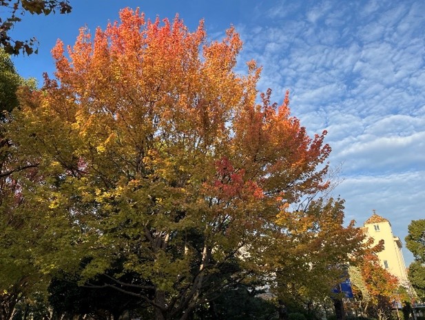 何かと時間に追われているときや色々なことで心憂がるときに、特に秋の聖和キャンパス内の木々を見るとオレンジに色づいていて、メープルを中心とした紅葉が私の心を癒してくれます。