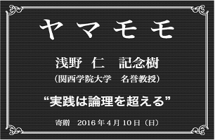 同窓生から「関西学院大学へ来た際に、浅野先生を偲ぶ場所を検討してもらいたい」という要望が多数寄せられ、「浅野仁先生を偲ぶ会」の開催(2016年4月10日)時、関西学院大学のご理解ご助力により、E号館北側(研究室が第1教授研究館へ移転後に、浅野先生が毎日通っておられた場所)に、同窓生でヤマモモを植樹することになりました。